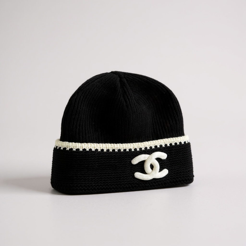 Bonnet Chanel Noir & Blanc – Logo CC Brodé