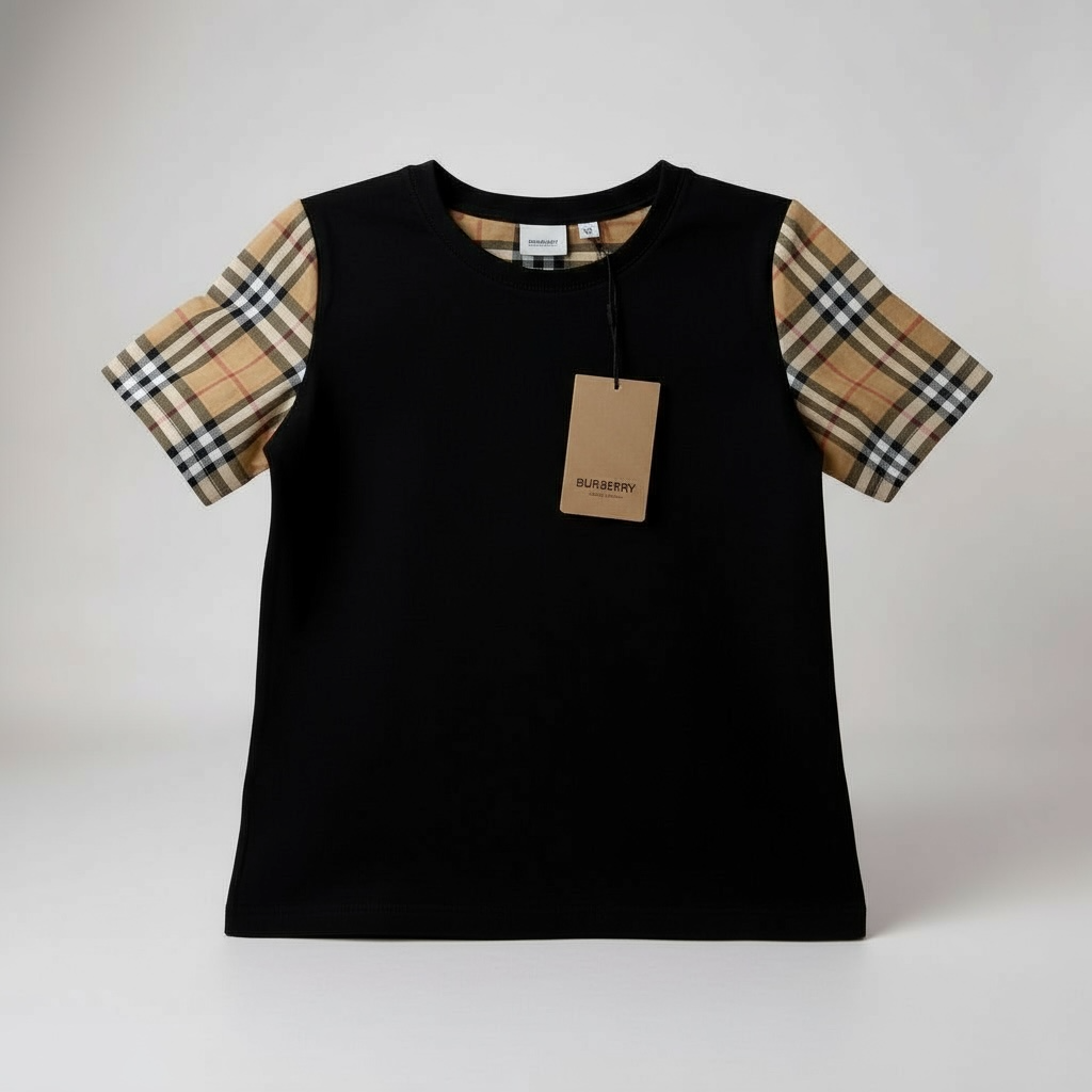 T-shirt Burberry Noir – Manches à Carreaux Iconiques