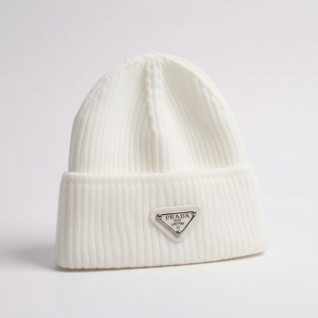Bonnet Prada Blanc – Logo Triangulaire Émaillé Argent